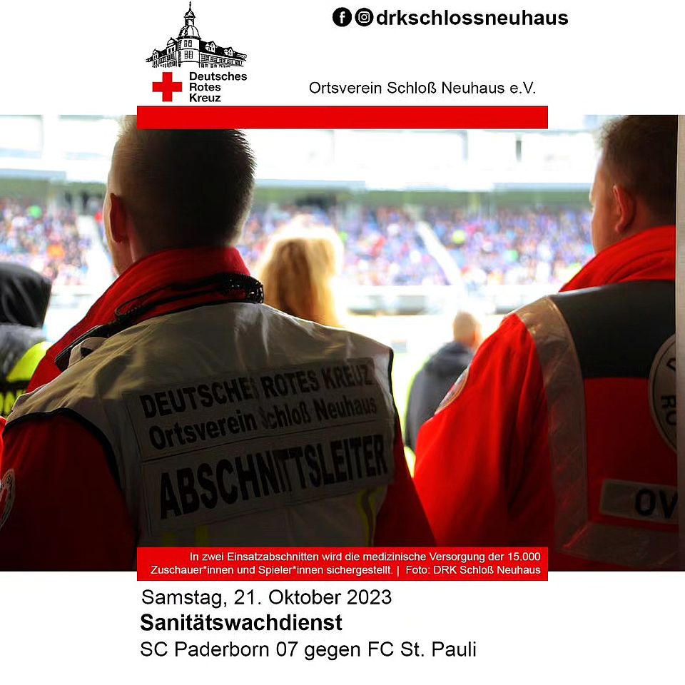 #helfenbeginntvorort#ausliebezummenschen#drk#drksnh#drkschlossneuhaus#schlossneuhaus#sande#sennelager#elsen#ehrenamtnrw#engagiertfuernrw#engagiertfürnrw#ehrenamt#sanitätswachdienst#fussball#2bundesliga#fussballbundesliga#paderborn#scp07#stpauli#fcstpauli#stadion#homedeluxearena